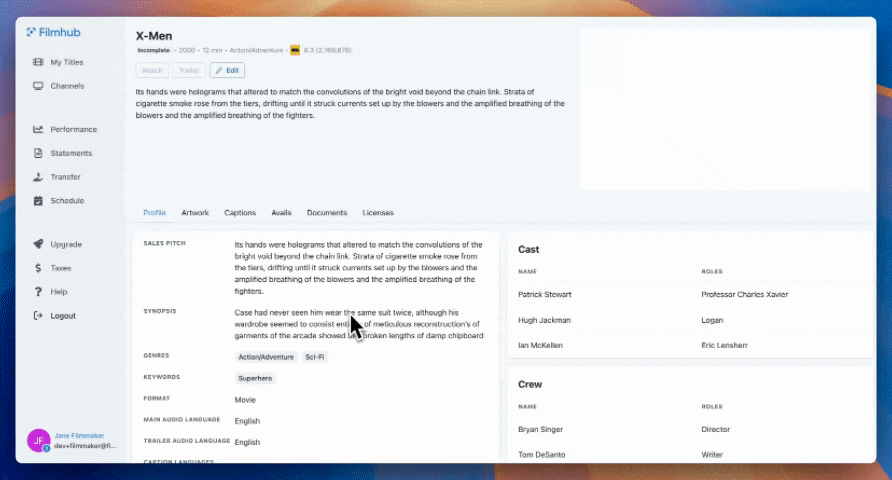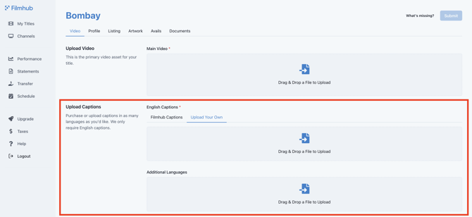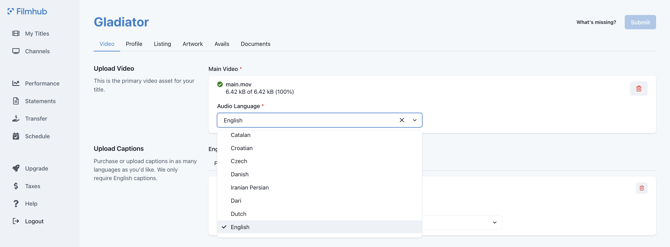 Filmhub can only create captions for English-language audio titles. No language other than English can be present in the audio.