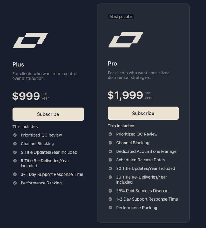 - Any used services included with your plan (title updates, title re-deliveries, scheduled release dates, etc.) may be subject to charge against future earnings if your subscription is canceled within a year (based on current Professional Services pricing).