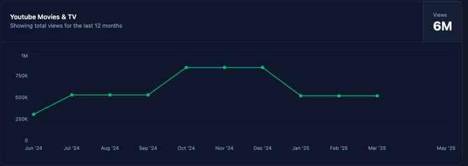 Youtube Movies & TV Insights provides detailed analytics on your movie and show's performance across the Youtube Movies & TV network. Use these insights to: